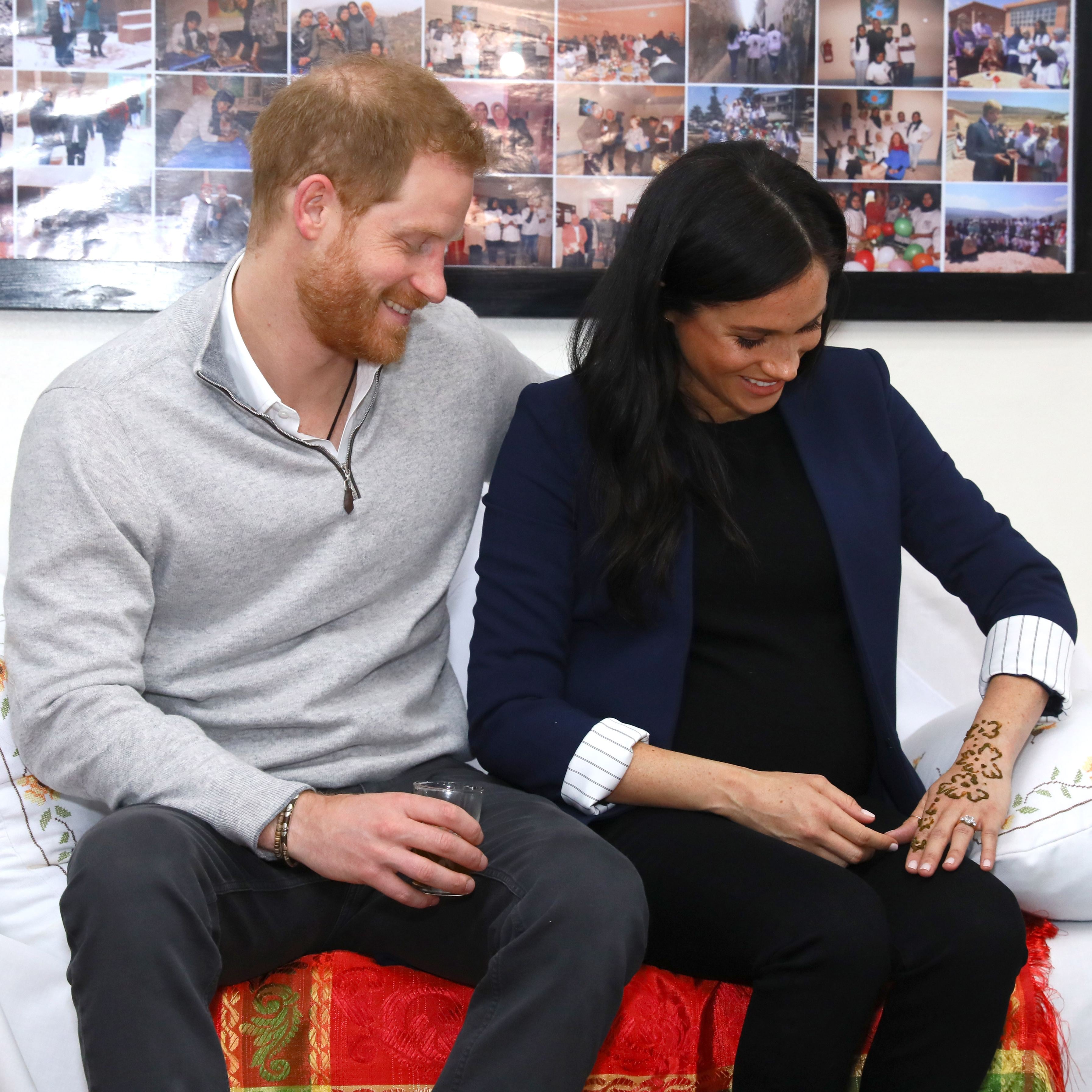 Pregnant Meghan Markle Gets A Henna Tattoo While Visiting A Boarding House In Morocco With Prince Harry Entertainment Tonight